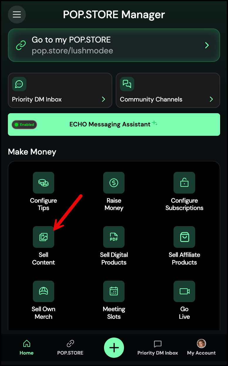 - From the Home Screen, tap Sell Content.