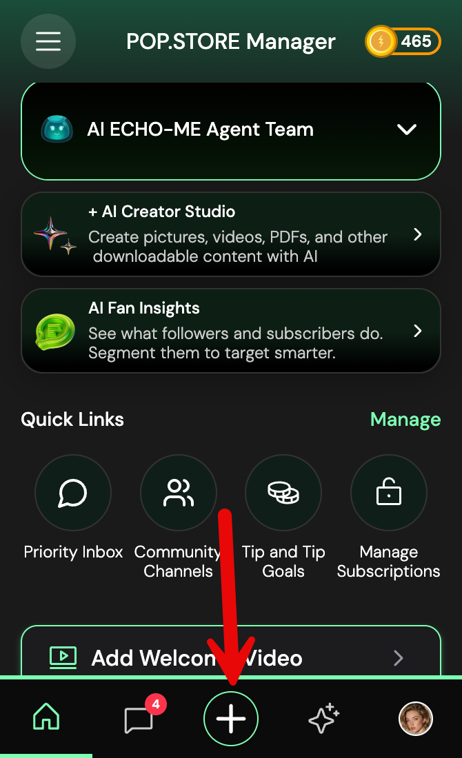 - From your Home screen, tap the + button at the bottom.