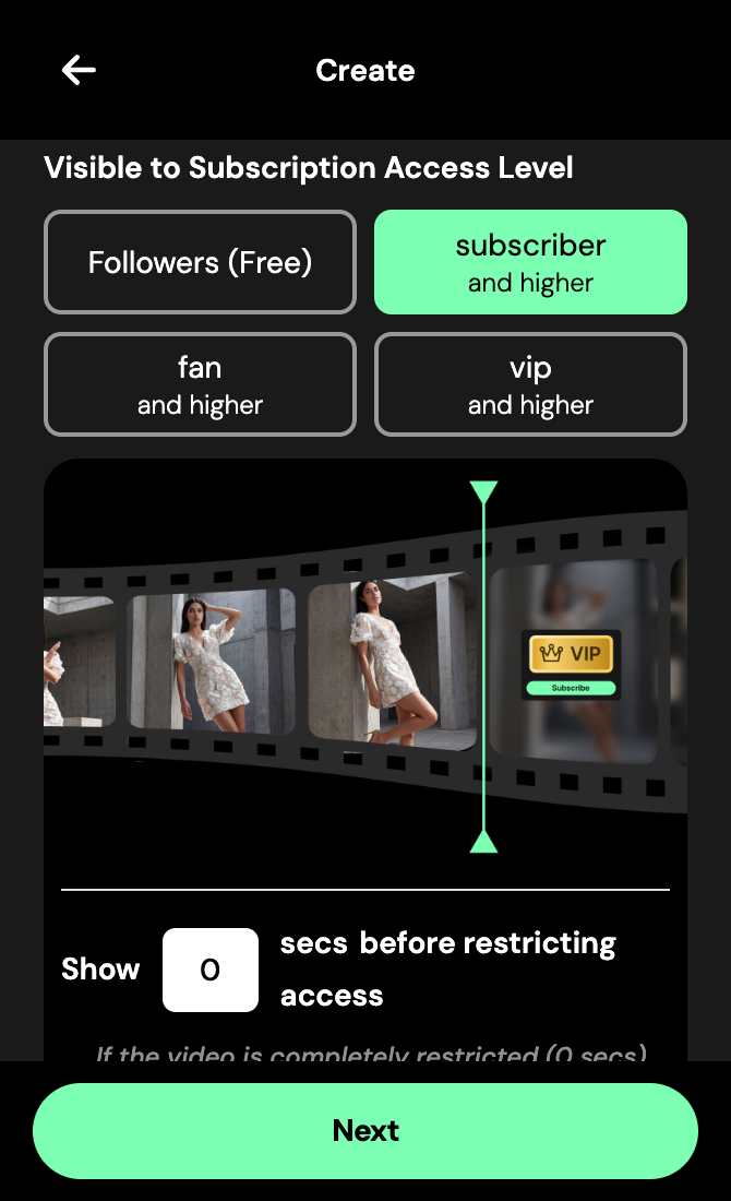 - Pause the video, drag the video to the frame you like then tap Thumbnail, or upload your own image (recommended size: 400×500). You’ll see how your video appears to both Subscribers and Non-Subscribers.
