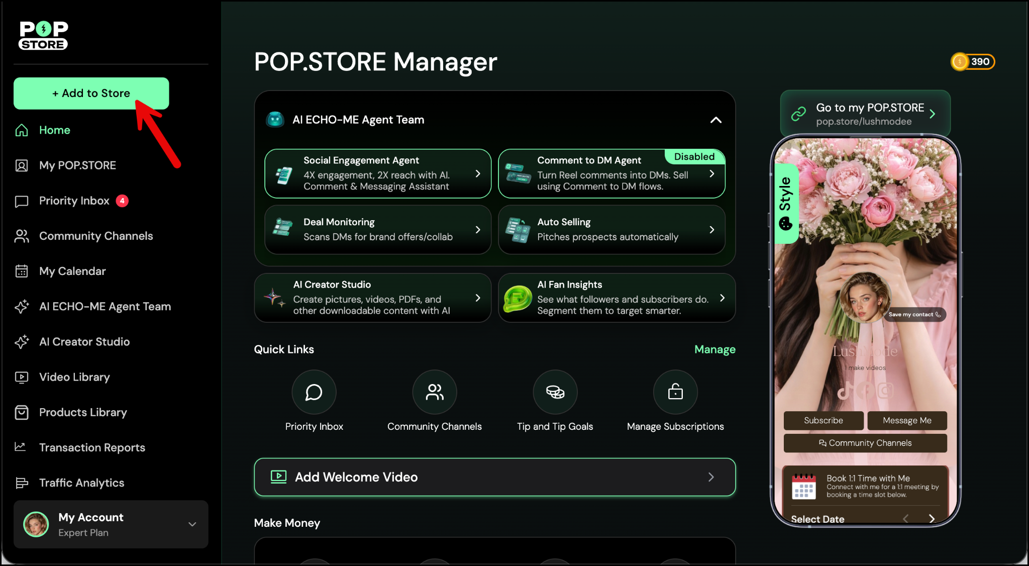 With POP.STORE, you can group your clips into a structured series, build anticipation, and even monetize your content by restricting episodes to subscribers.