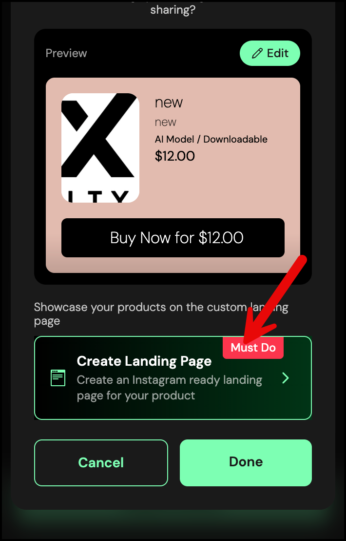 The Landing Page lets you design a detailed product page with more images, longer descriptions, and a gallery to showcase your download and you can even share the landing page link directly with your followers.