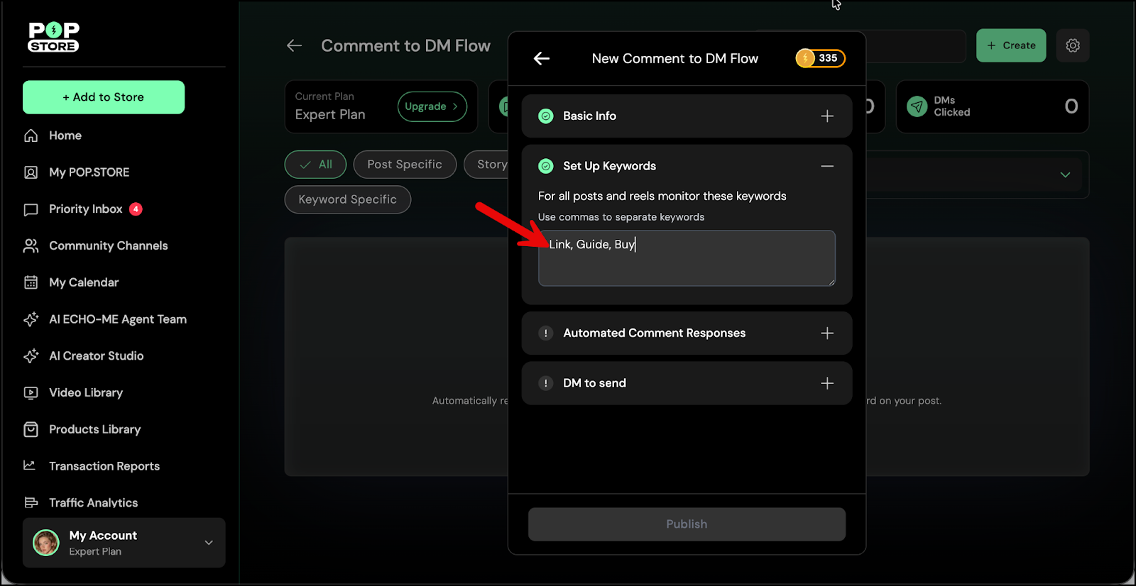 Comment to DM Agent instantly sends a personalized comment and DM that feels natural, helpful, and on-brand triggered by the keywords you choose and powered by the offers, discounts, or actions you've configured.