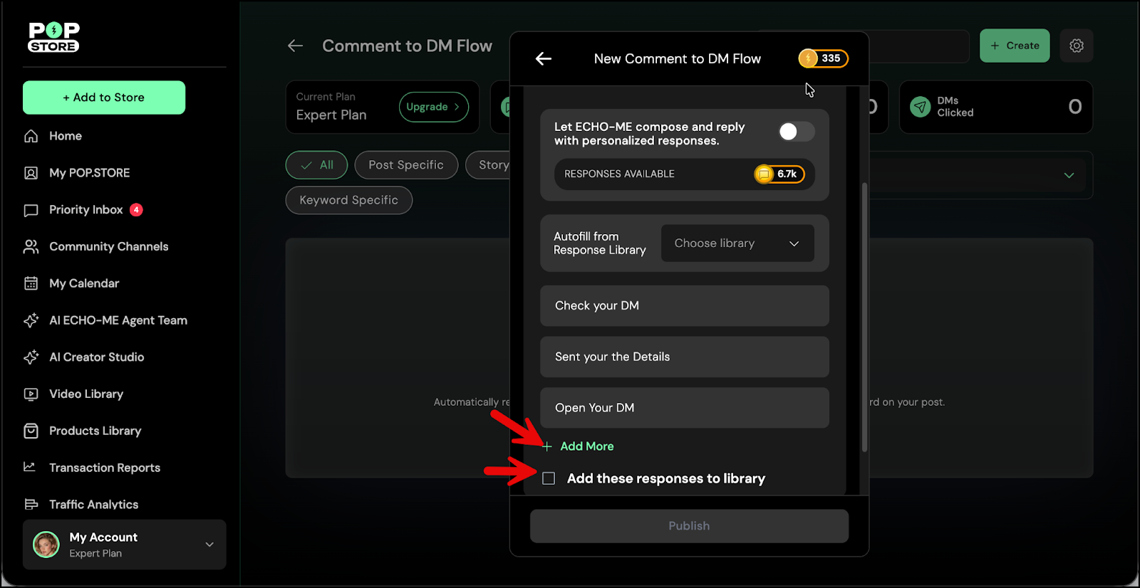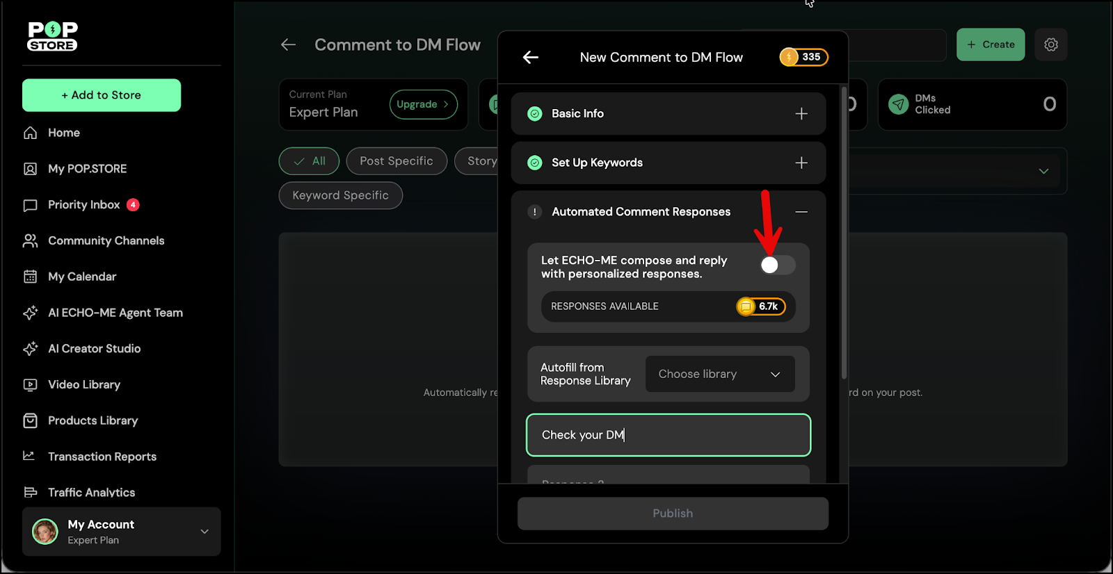 You can either toggle this to let ECHO-ME reply automatically or add your own responses manually. -