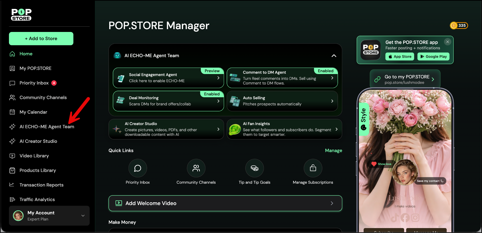 - Or from the left panel, tap AI ECHO-ME Agent Team