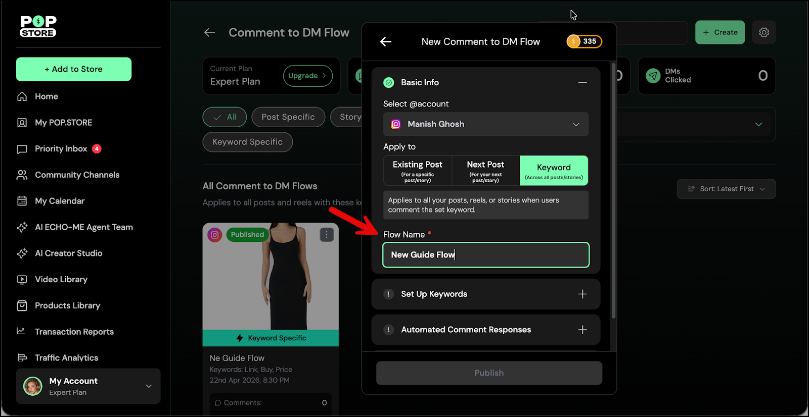 Before you start: If you haven't set up your ECHO-ME Agent Team yet, complete that first. Once done, you can start configuring Comment to DM Agent. To know the setps read: How to Set up AI ECHO-ME Agent Team
