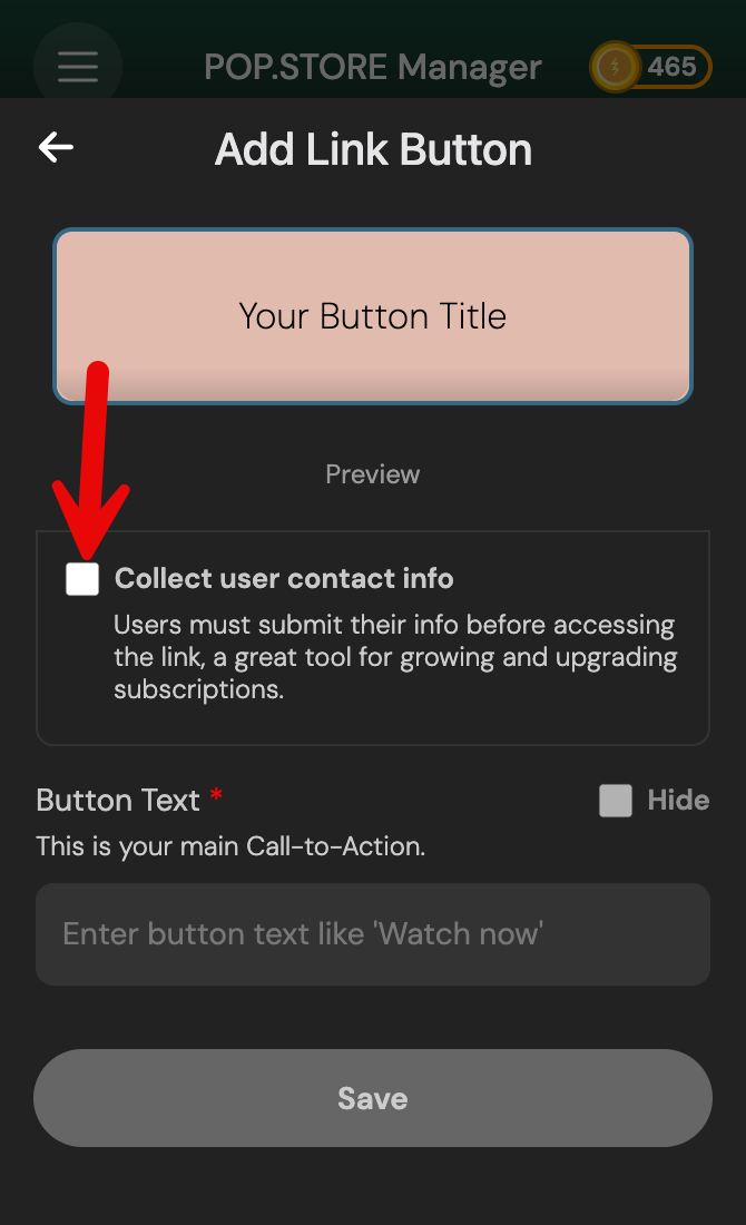 Want to drive traffic to your website from your POP.STORE profile? You can easily add a link button that redirects followers to any webpage - whether itโs your homepage, blog, or product page. You can even enhance the experience by playing a Magic Clip as the buttonโs background.