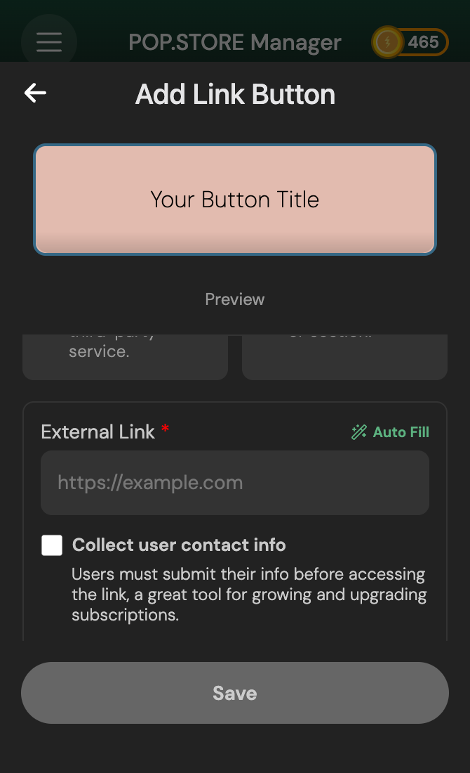 Link buttons help drive traffic to your most important pages - whether it’s your website, newsletter, blog, or another section of your POP.STORE.
