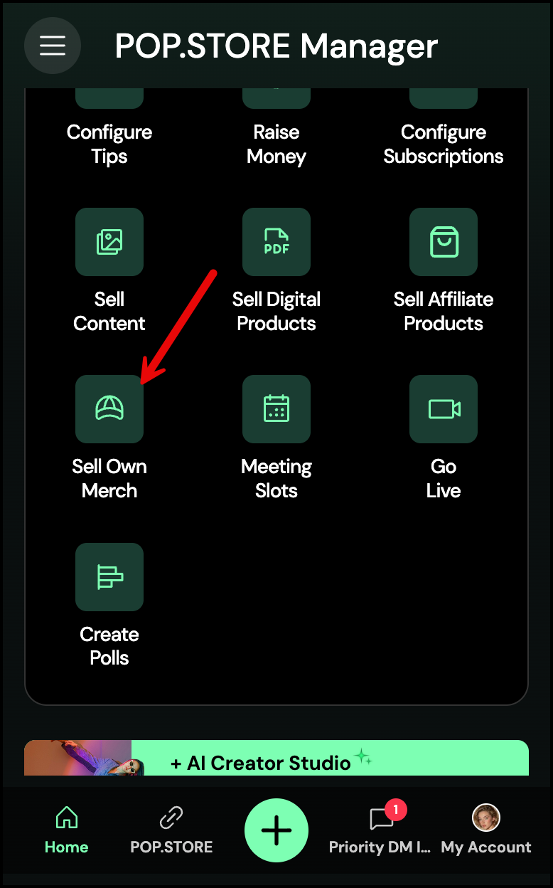 Want to sell your own merch? You can add your merchandise to your Pop.Store, create a full PDP, and sell it directly from your link-in-bio store.