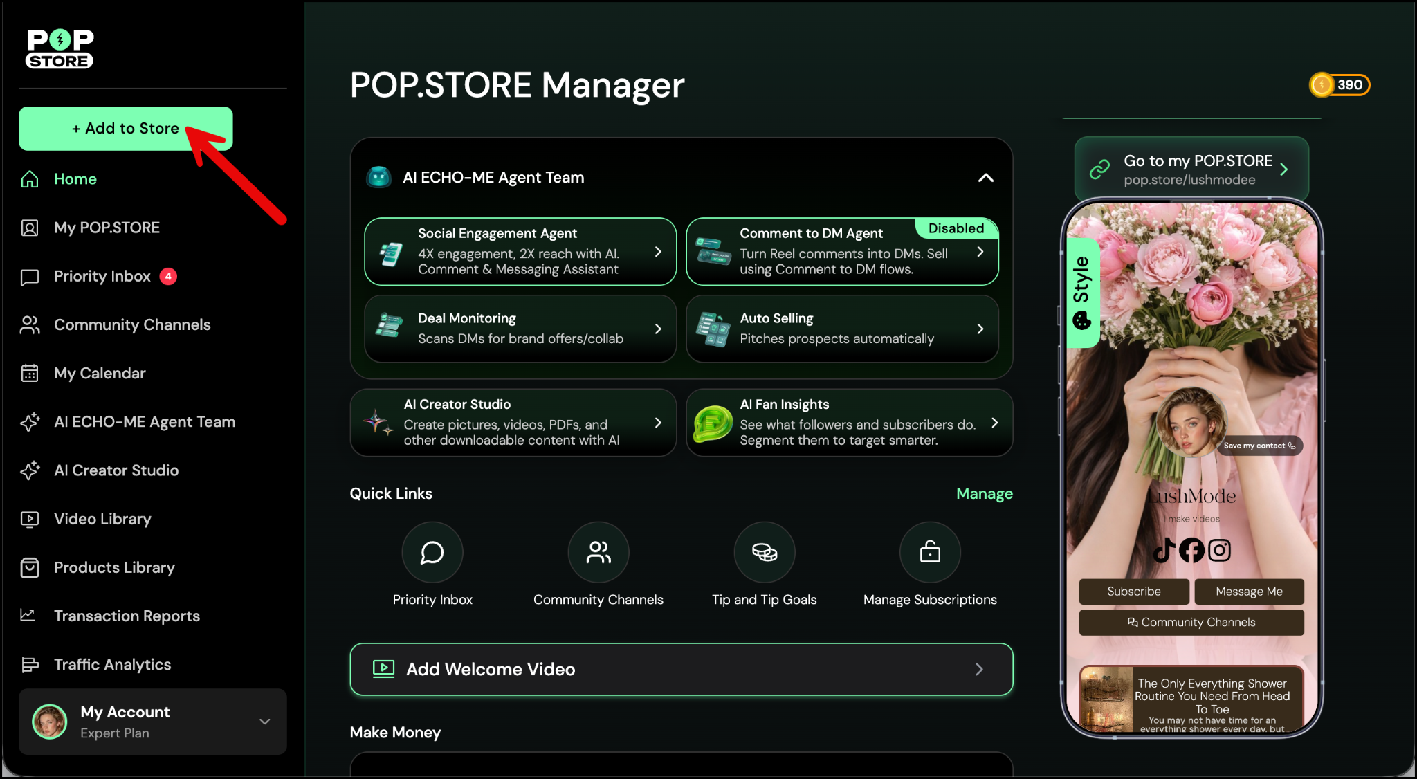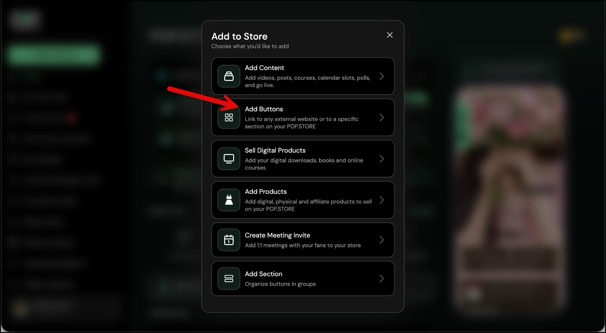 Want to guide your followers straight to a specific part of your POP.STORE - like a course, a series, any link button, or a product collection? You can do that by adding a button that links directly to that section.