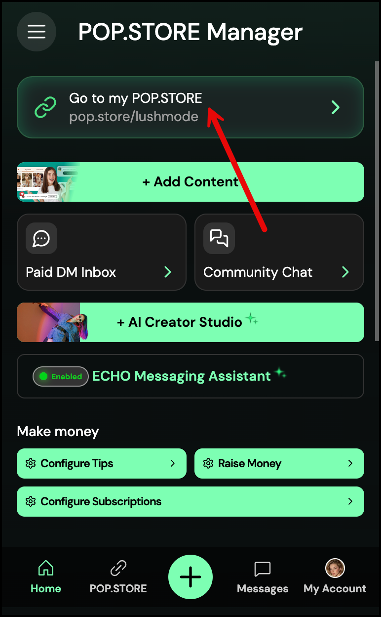 1. From the Home screen, tap Go to my POP.STORE to open your Bio Store section.