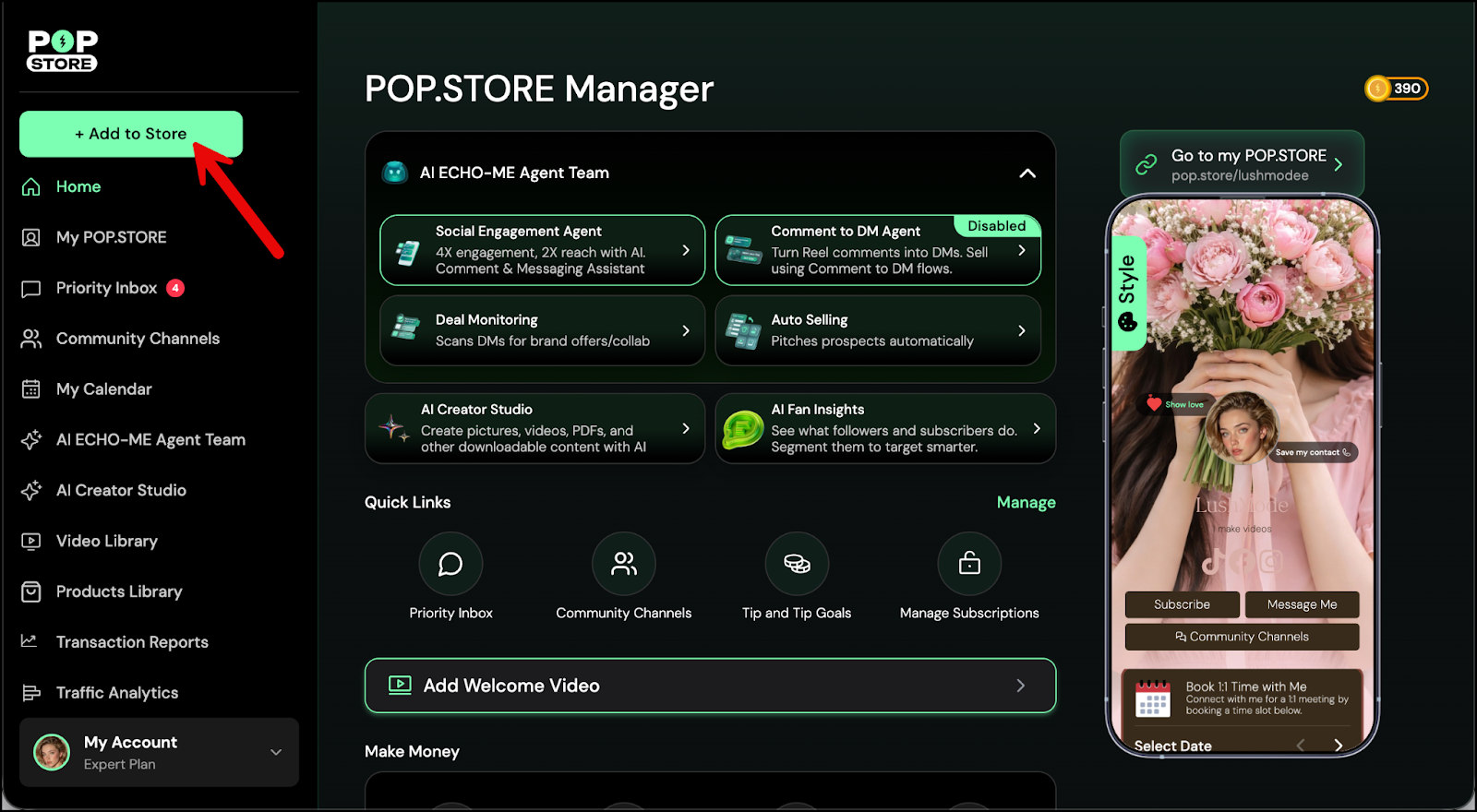 - From the left panel, tap +Add to Store