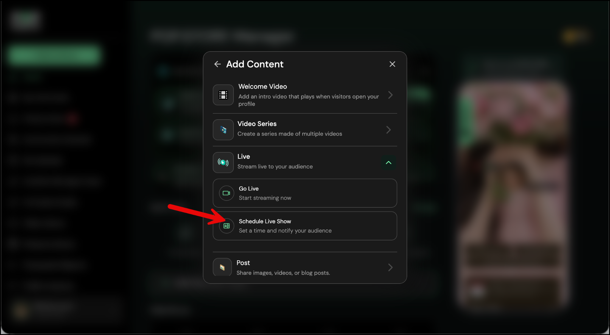From the Live section, select Schedule Live Show