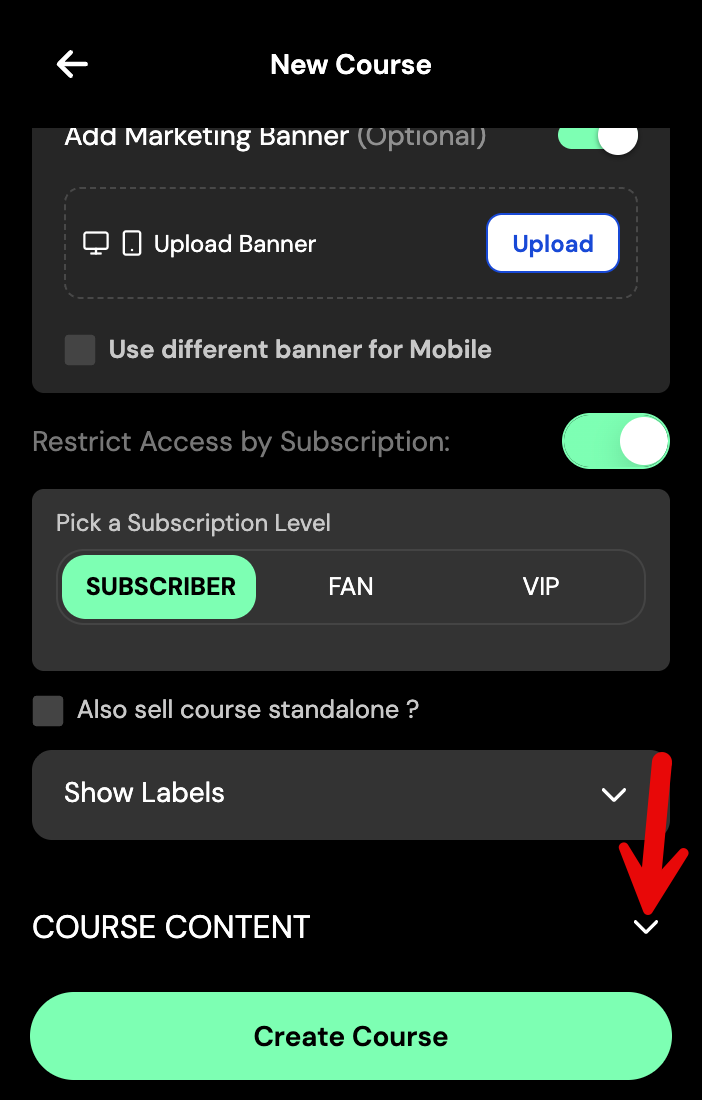 Upload a Marketing Banner - think of it as a large poster that visually represents your course. You can upload separate banners for Desktop and Mobile by checking Use different banner for Mobile.