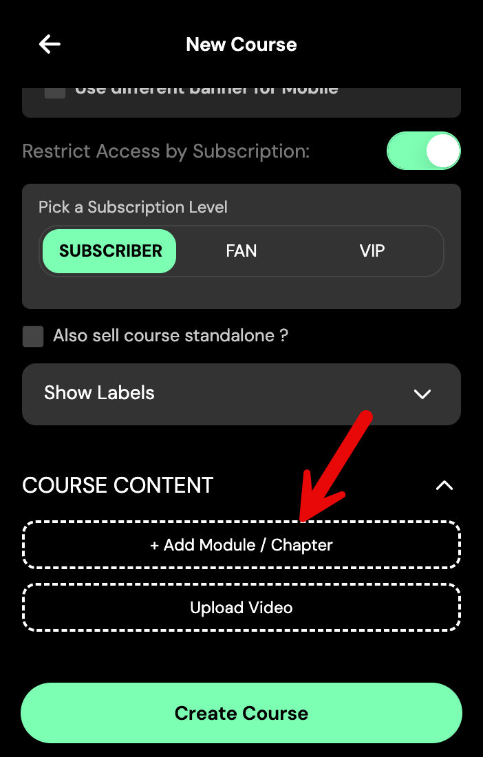 Next, add your course content by expanding Course Content and selecting + Add Module / Chapter.