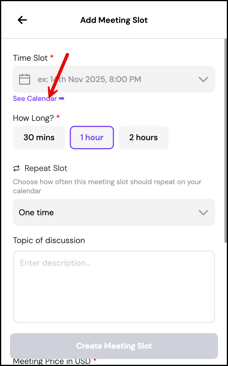 Note: If the session is already booked, you can only reschedule it - other details cannot be edited.After you update a slot, your fan will receive an email notification.