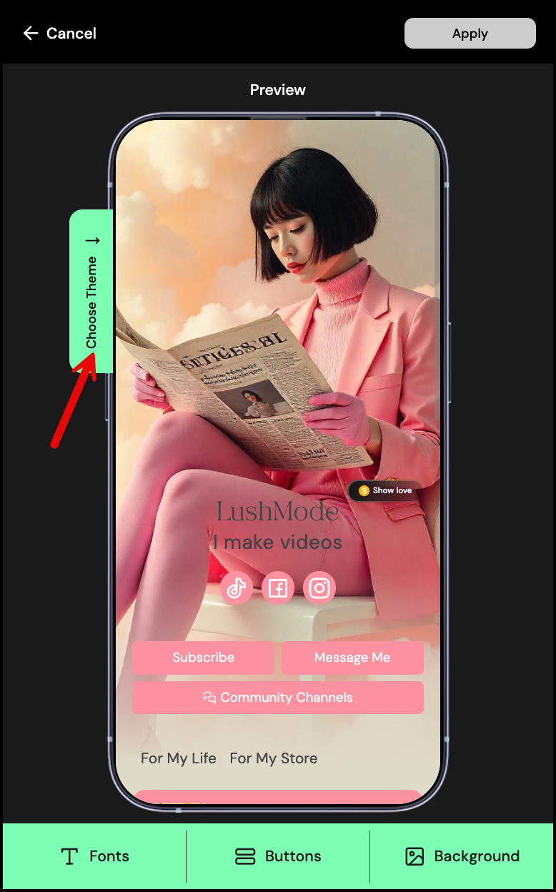 - Pick your fonts, tap Apply Theme, and you’re done!