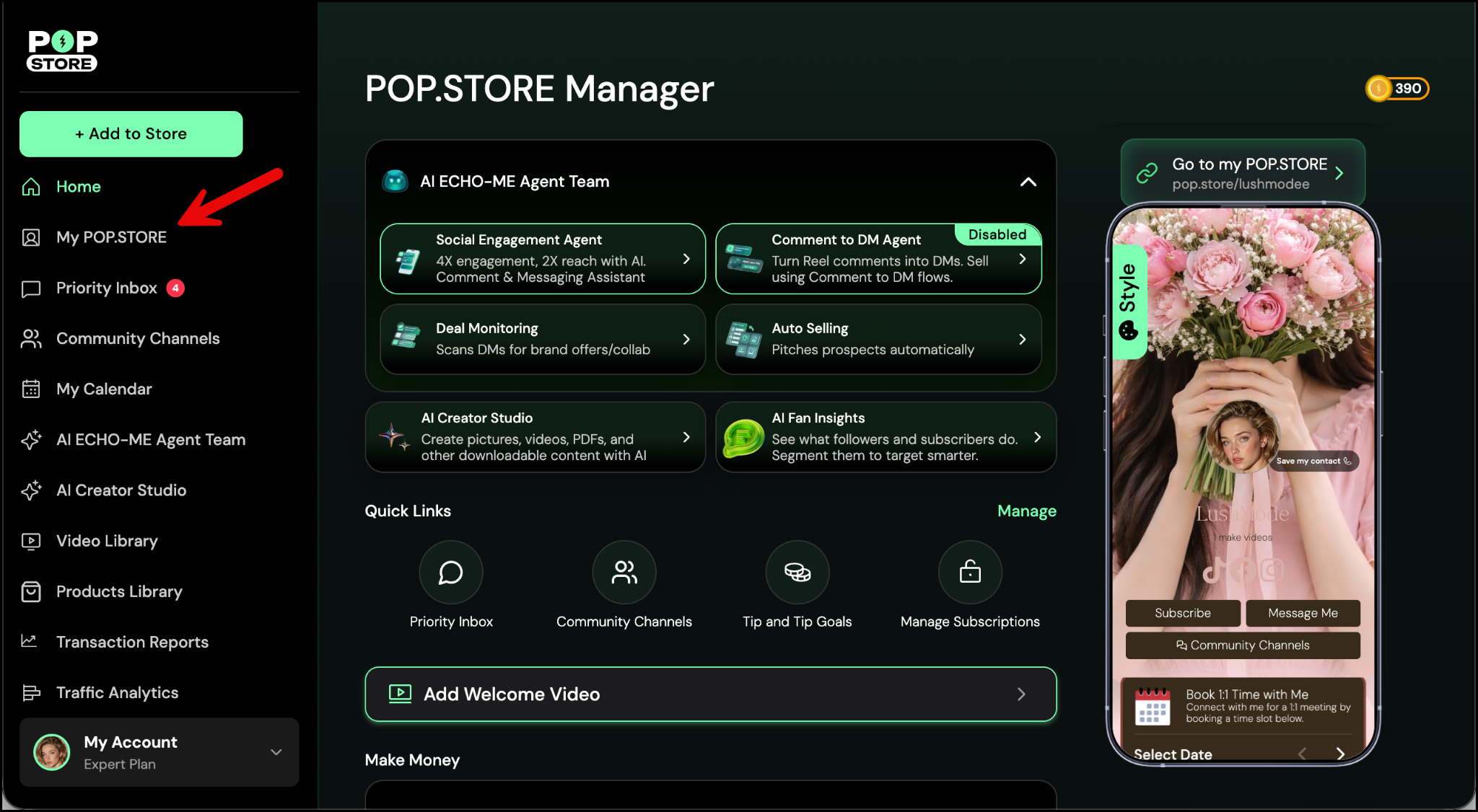 - From the Home screen, tap My POP.STORE to open your Profile.