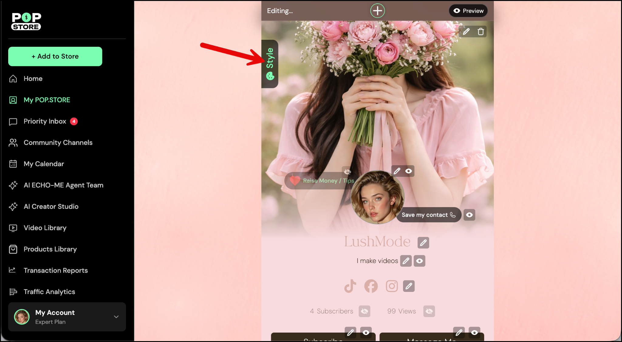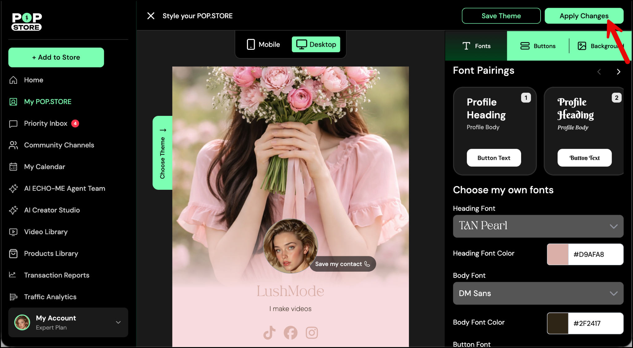 Want your profile buttons to better match your brand or vibe? You can easily update the font, size, and color styles - and the best part? You also have the option to apply these changes across your entire POP.STORE for a consistent look.