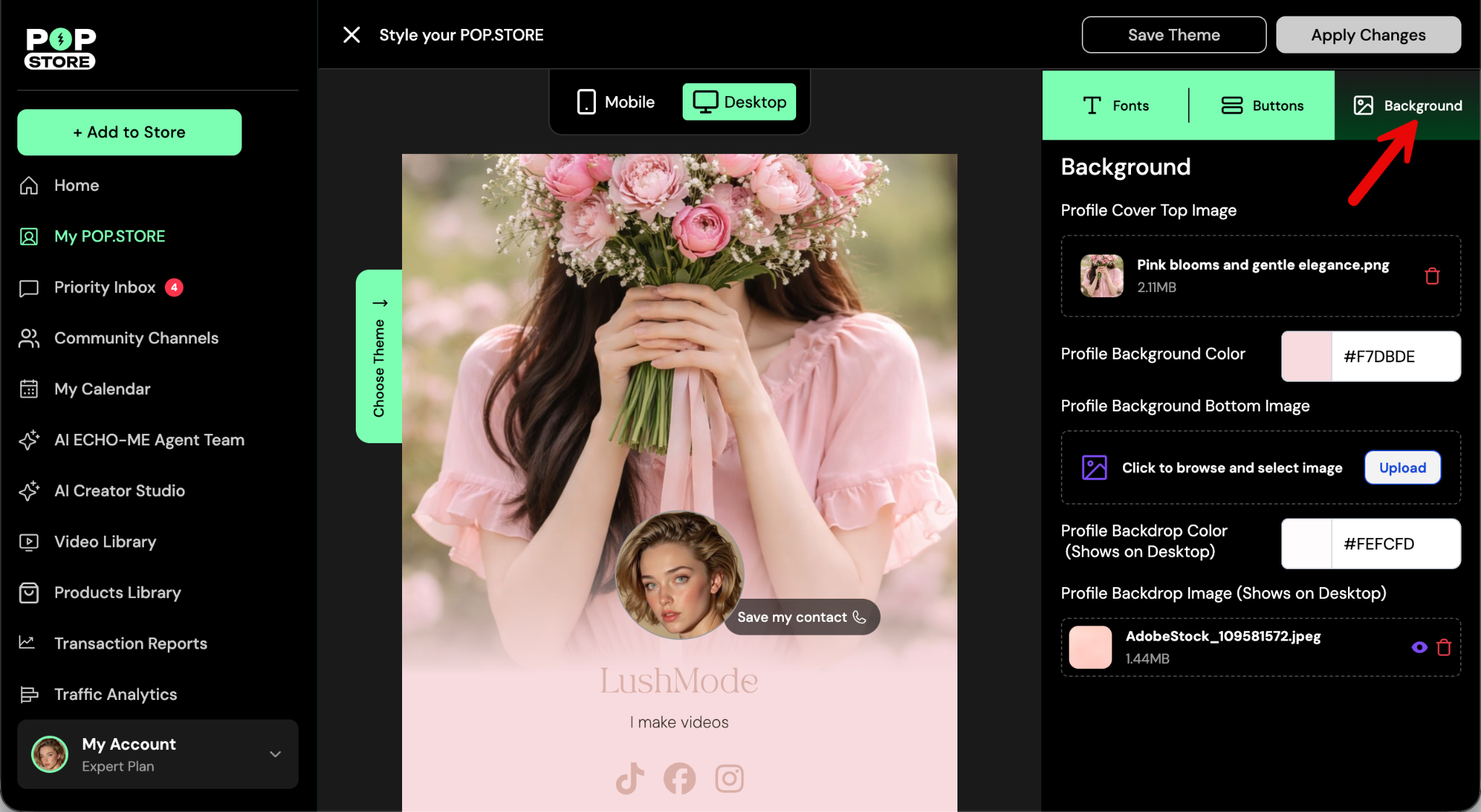Go to the Background tab to style your profile background.