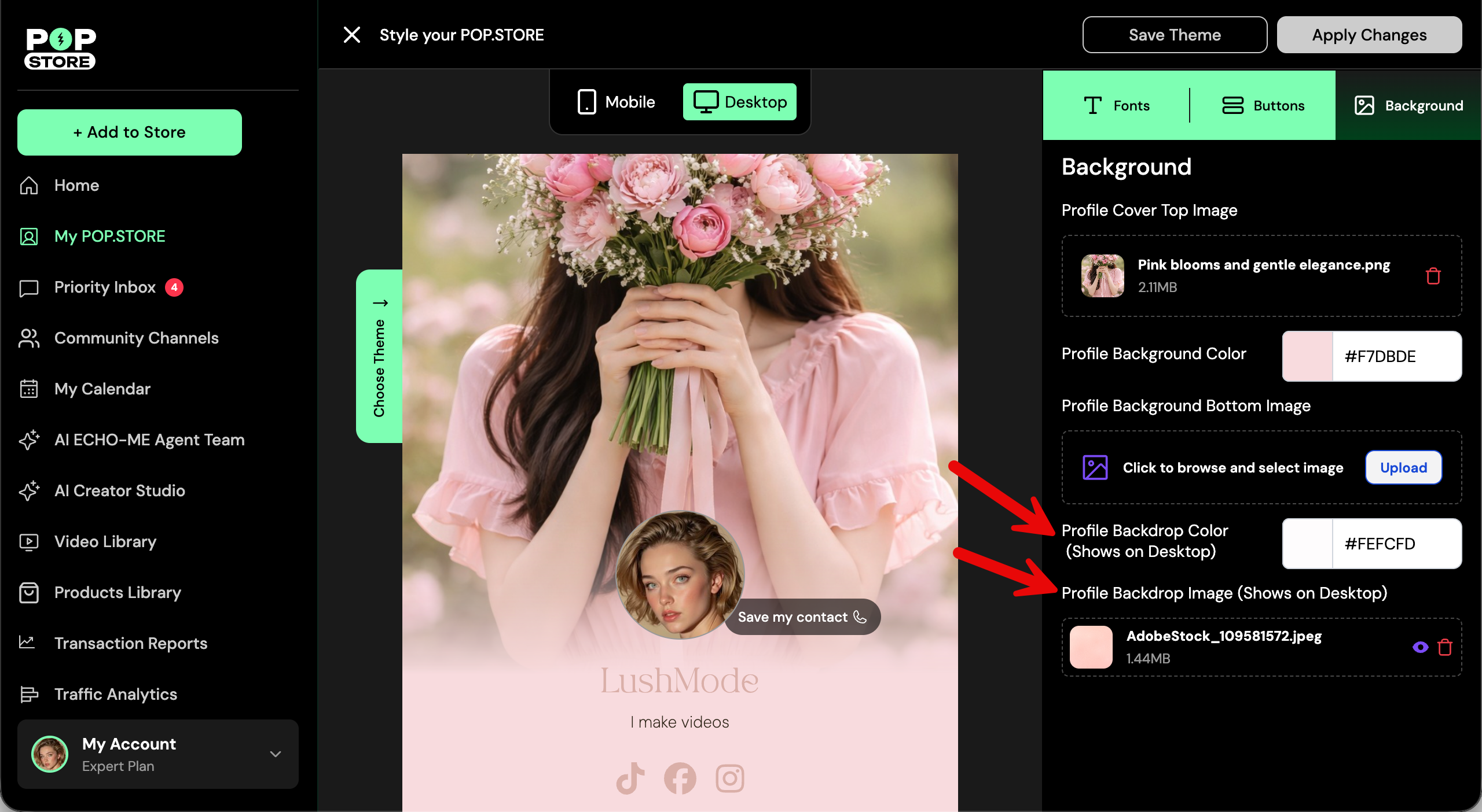 Want your POP.STORE to stand out on desktop too? You can add a custom background color, an image or even both - for desktop visitors.