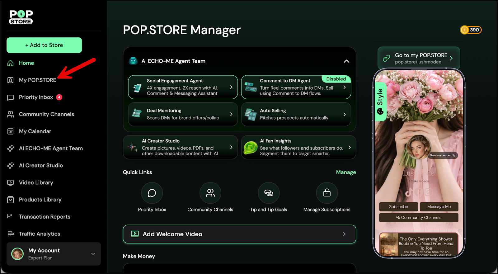 - From the Home screen, tap My POP.STORE to open your Profile.