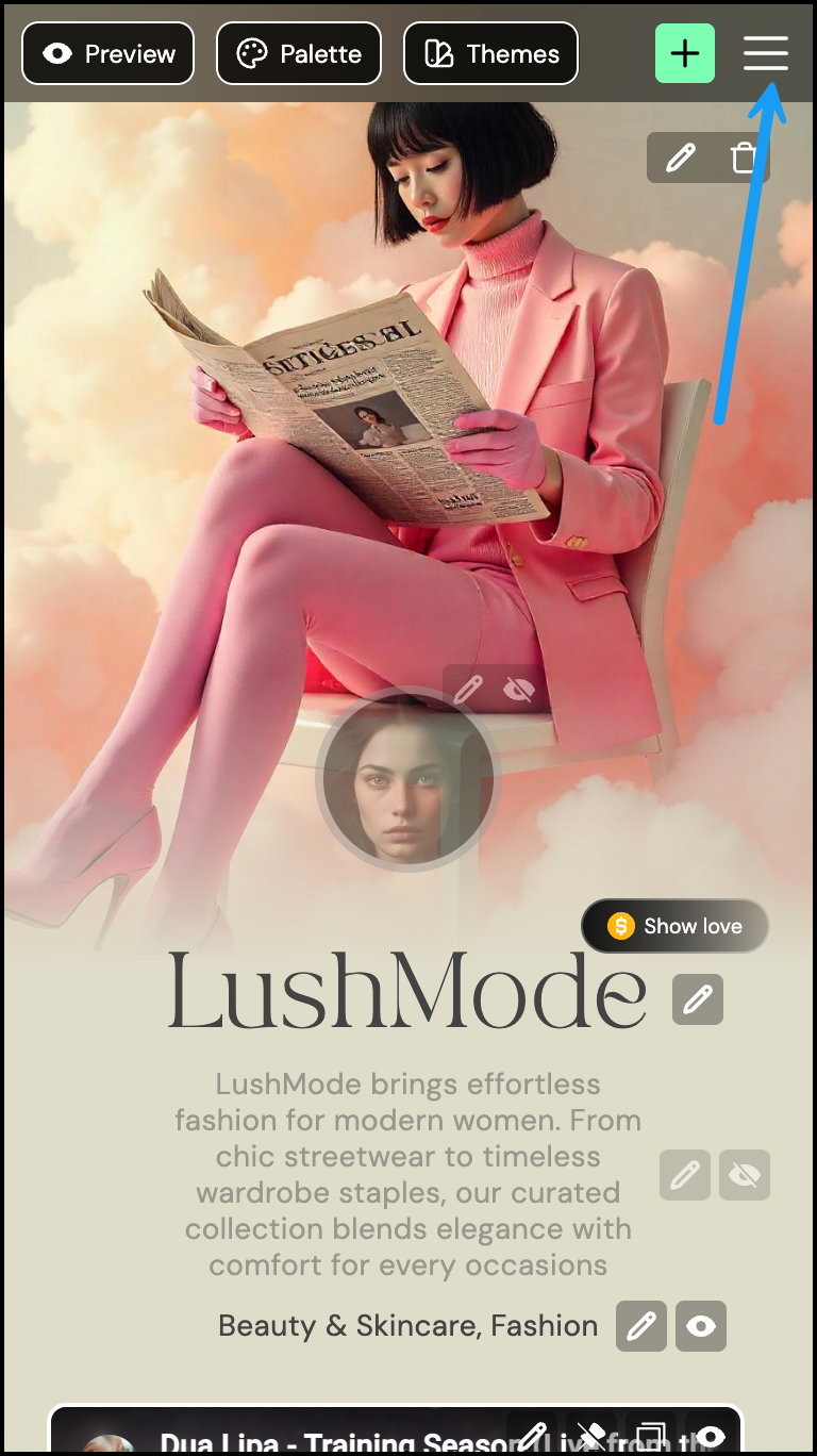 - From your Bio section, tap the β° hamburger menu in the top-right corner.