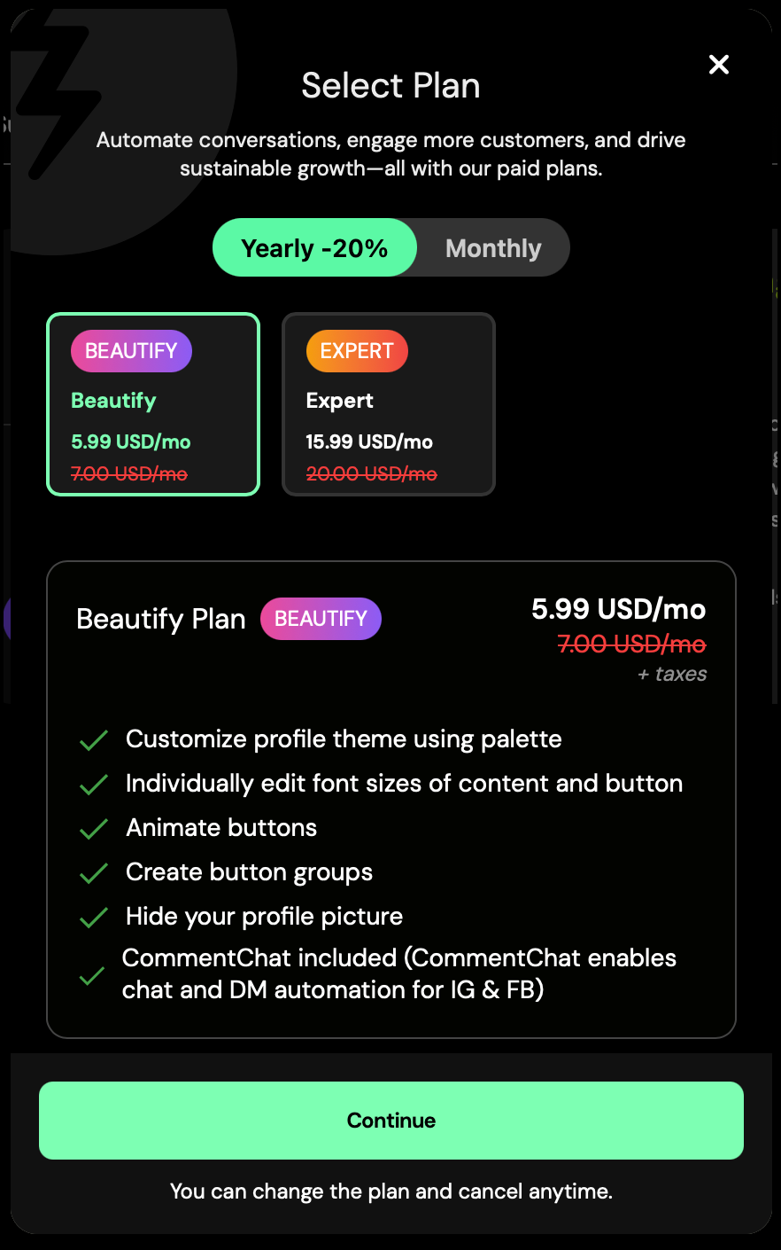 Choose your preferred plan and tap Continue.