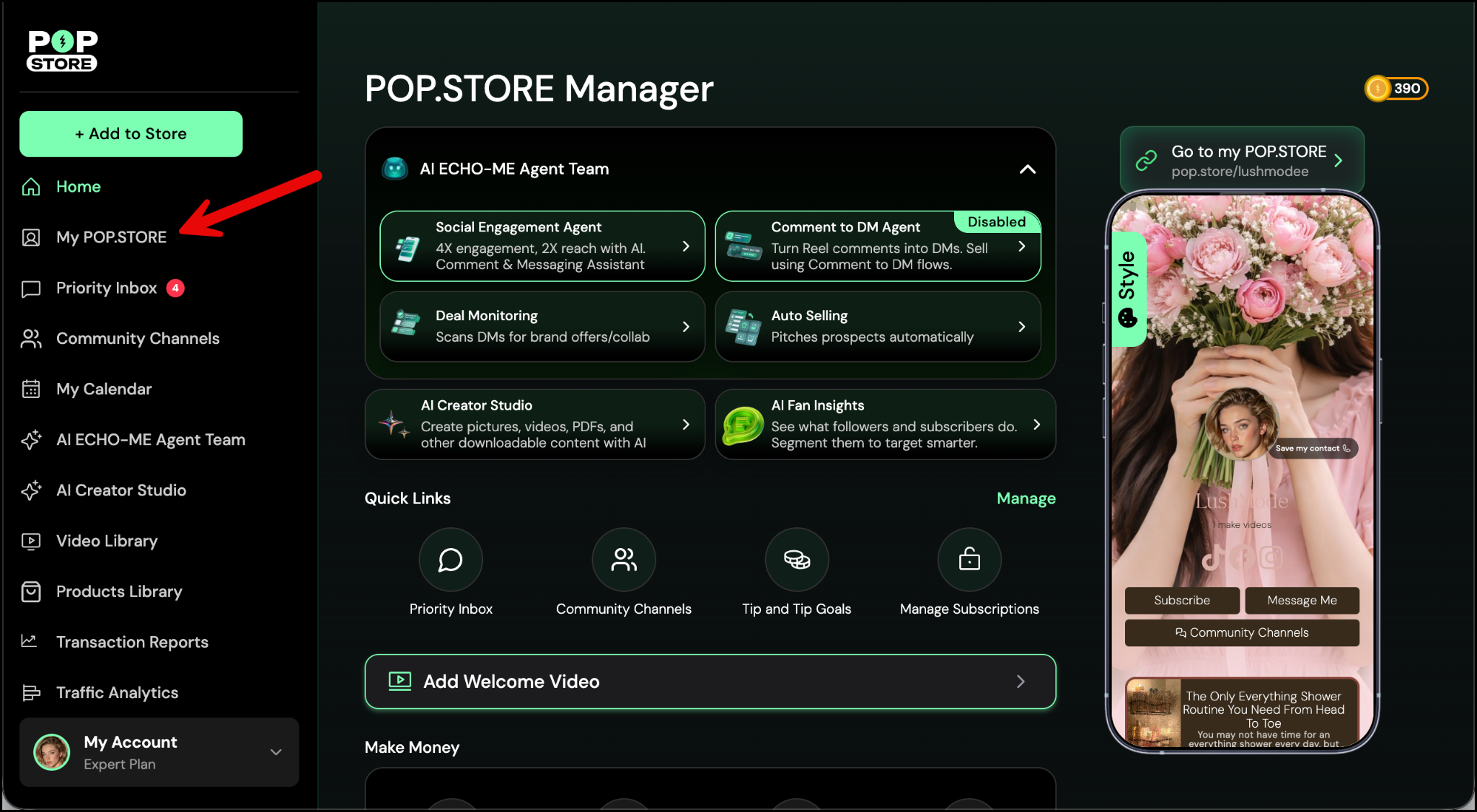 - From the Home screen, tap My POP.STORE to open your profile.
