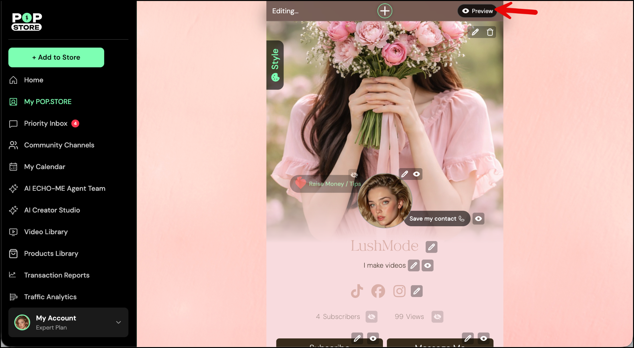 Want to remove the floating POP.STORE button from your profile? If you're looking for a cleaner, more personal feel, it just takes one quick step - after upgrading your plan.