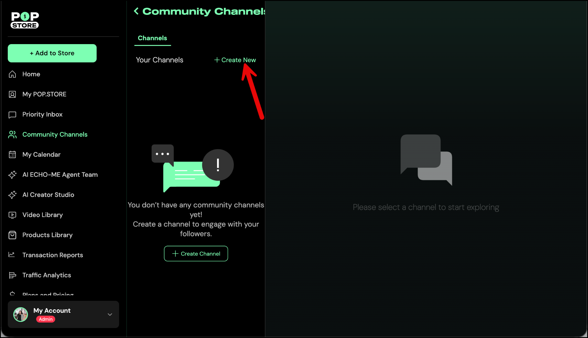 Here, you’ll see your current list of channels (if any). Tap +Create New to start a new one.