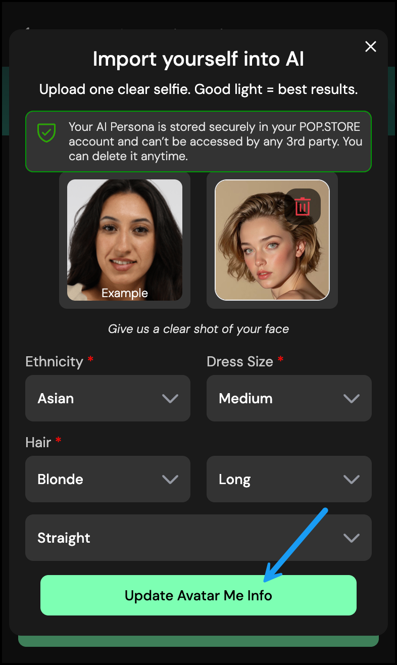Want to switch up your hair color, outfit type, or refine your body details? You can update your AI Persona anytime so your fans always generate your most you avatars.