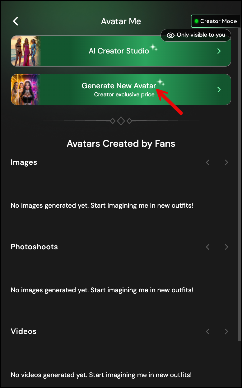 Now you're all set to show off your AI avatar in different outfits, scenes, and moods. Create it, share it, and let your fans engage with your most iconic looks!