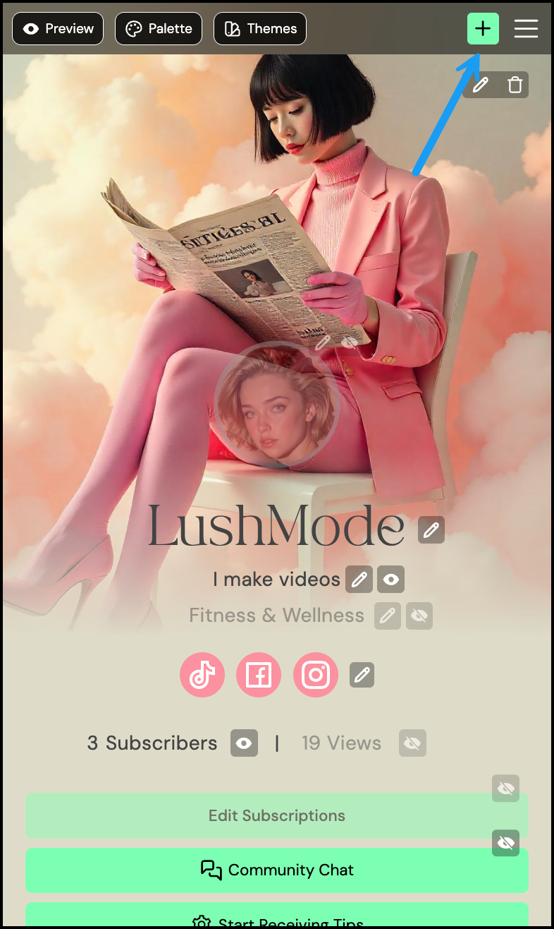 - From your Bio section, tap the green + button.