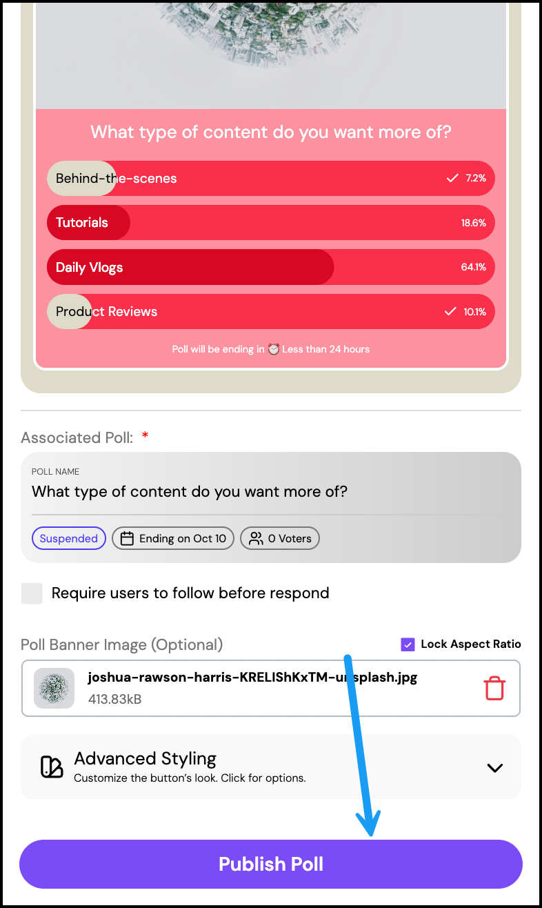 - Add a Poll Banner Image (optional) to make your poll visually appealing. Supported formats: PNG or JPG (max 50MB).