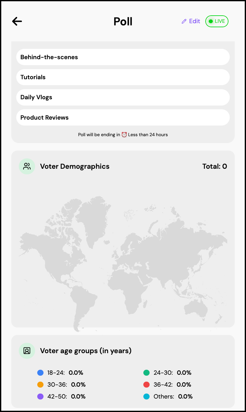 In Analytics, you can view total votes, voter demographics, and age group insights.