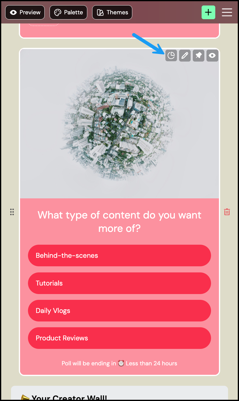 Your poll is now live on your Bio. Use the icons on the poll to manage it: