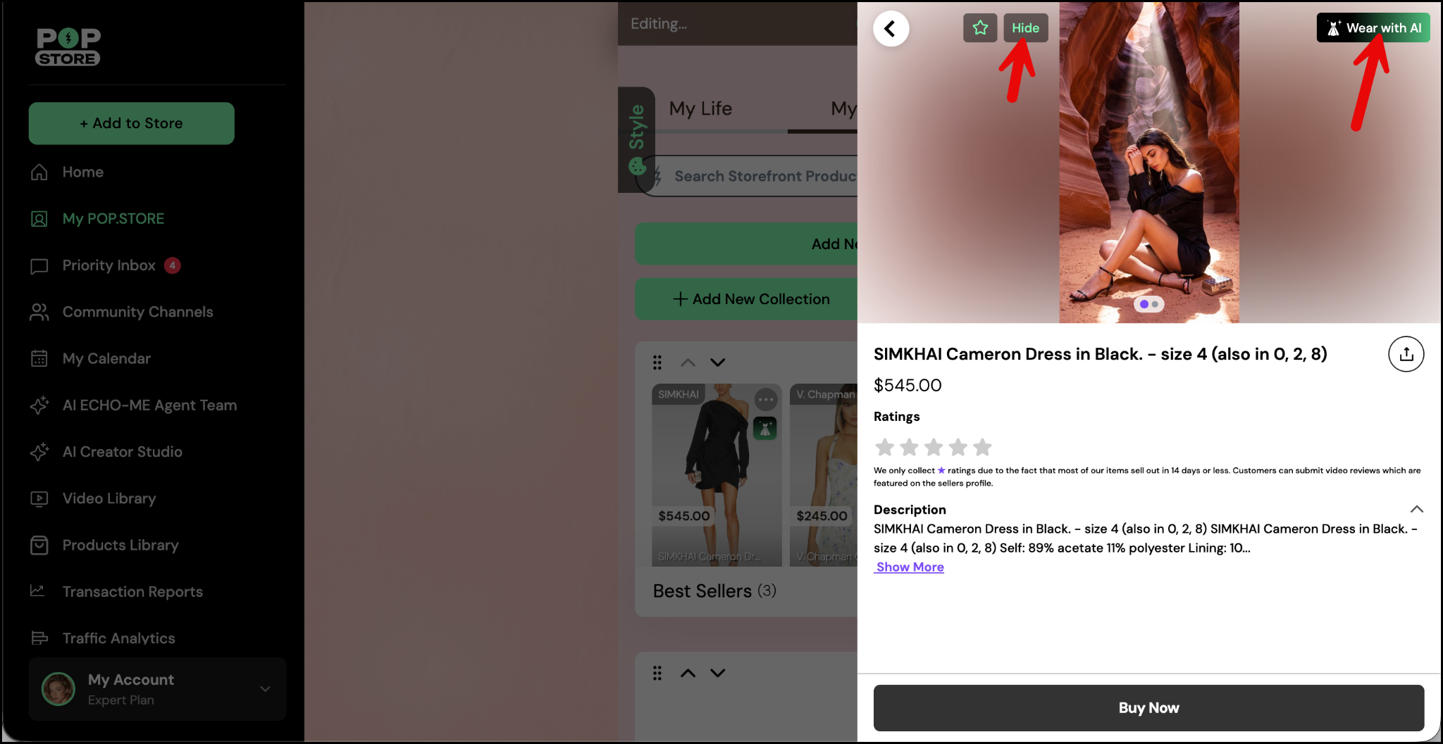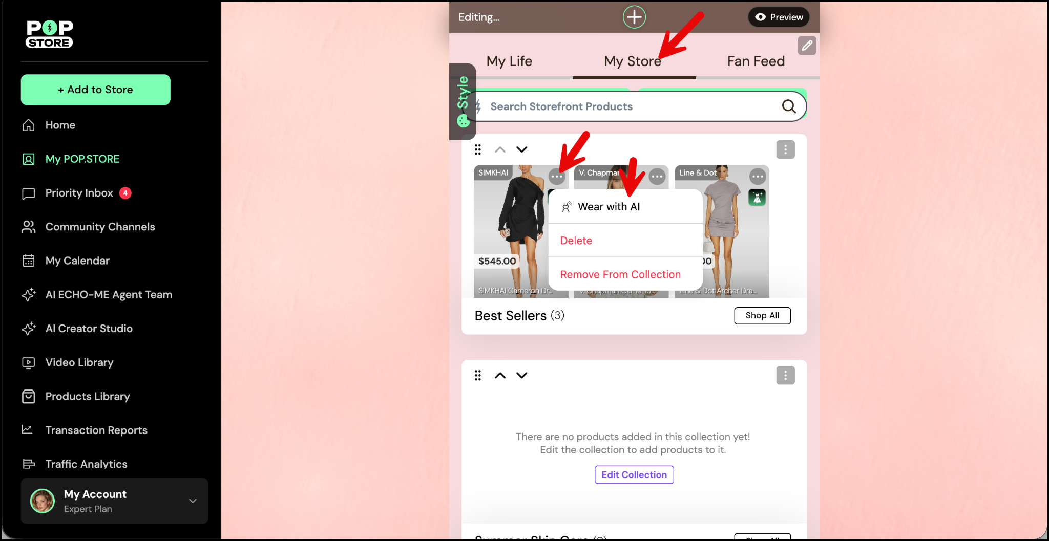 Scroll down your POP.STORE profile until you reach the My Store section. Here, you’ll notice some products have a small Wear with AI icon. Only products with this icon can be used for this feature.