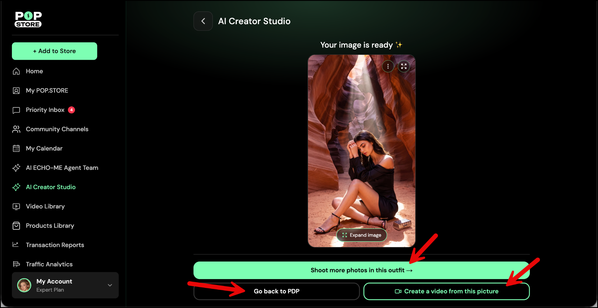 Once your image is ready, you can:Tap Shoot more photos in this outfit to try more poses