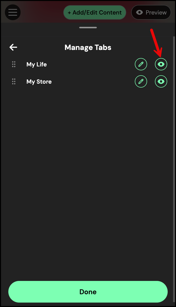 - You’ll now see a list of your tabs - for example, Exclusive Content, My Store, and Feed.
