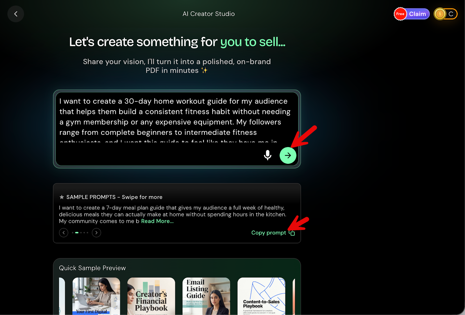 Use a Sample Prompt - Youβll see Sample Prompts. If something matches your idea, tap Copy Prompt and it will be pasted automatically.