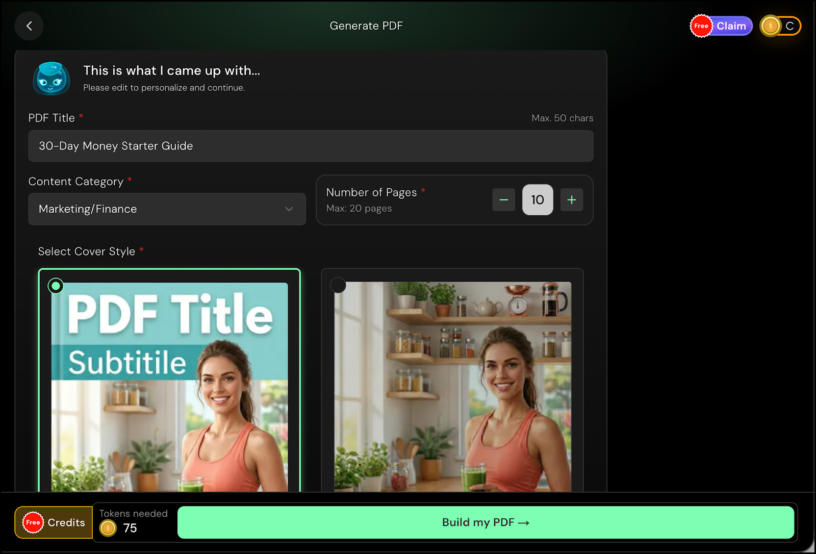 With AI PDF Creator, you can generate a professional, sales-ready PDF in just a few simple steps. The AI helps create the content, design the layout, and prepare a downloadable PDF that you can share or sell directly from your Pop.Store.