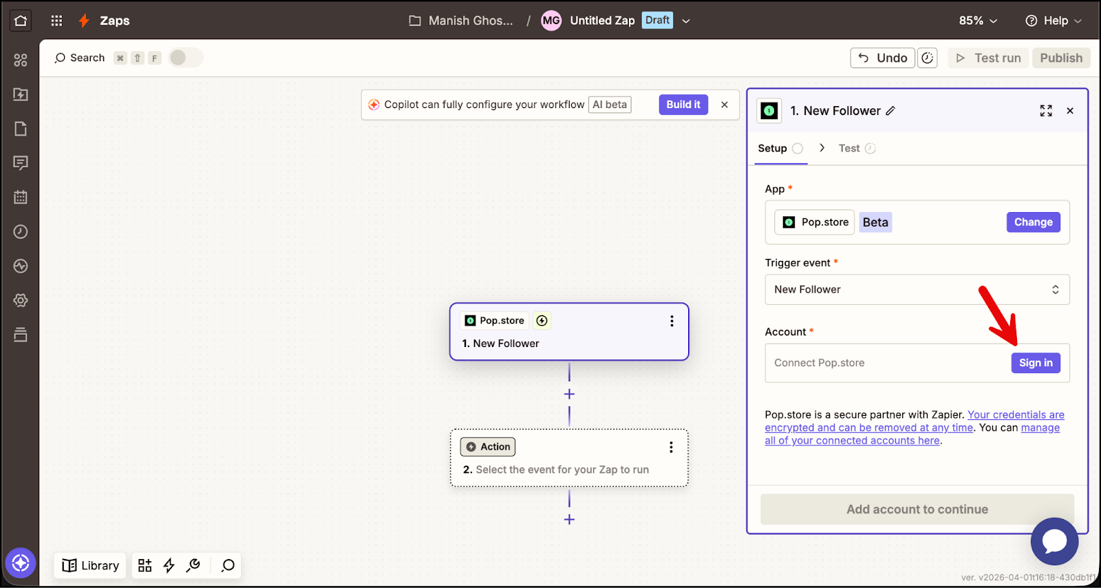 Once connected, Zapier will automatically track actions on your POP.STORE and pass that data to other tools you connect.