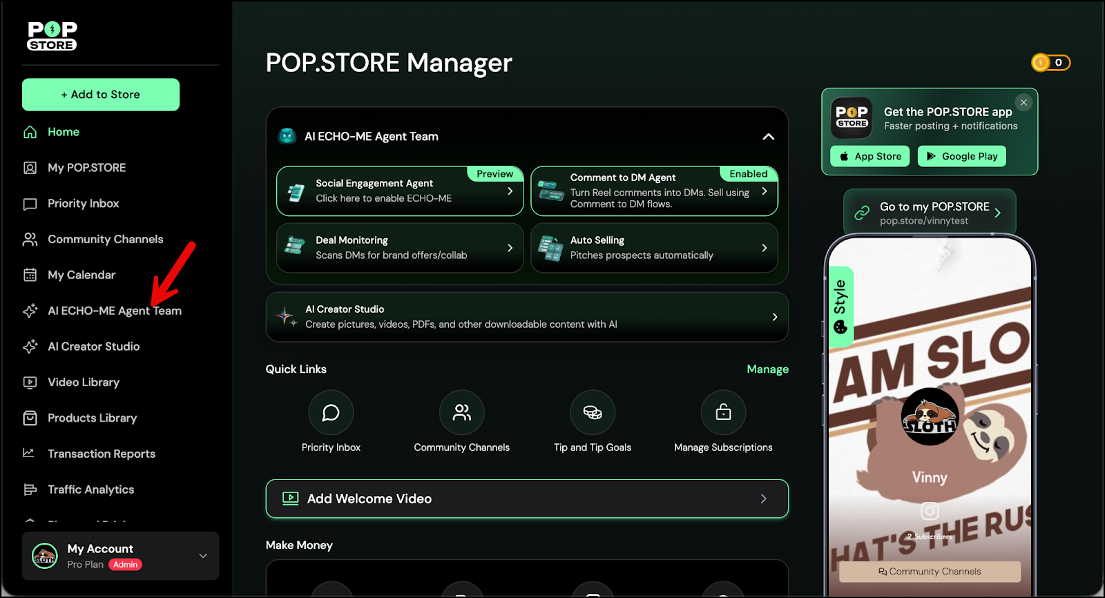 - Or from the left panel, tap AI ECHO-ME Agent Team