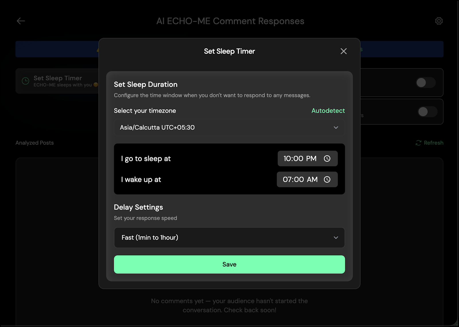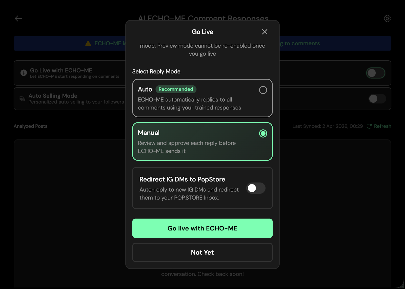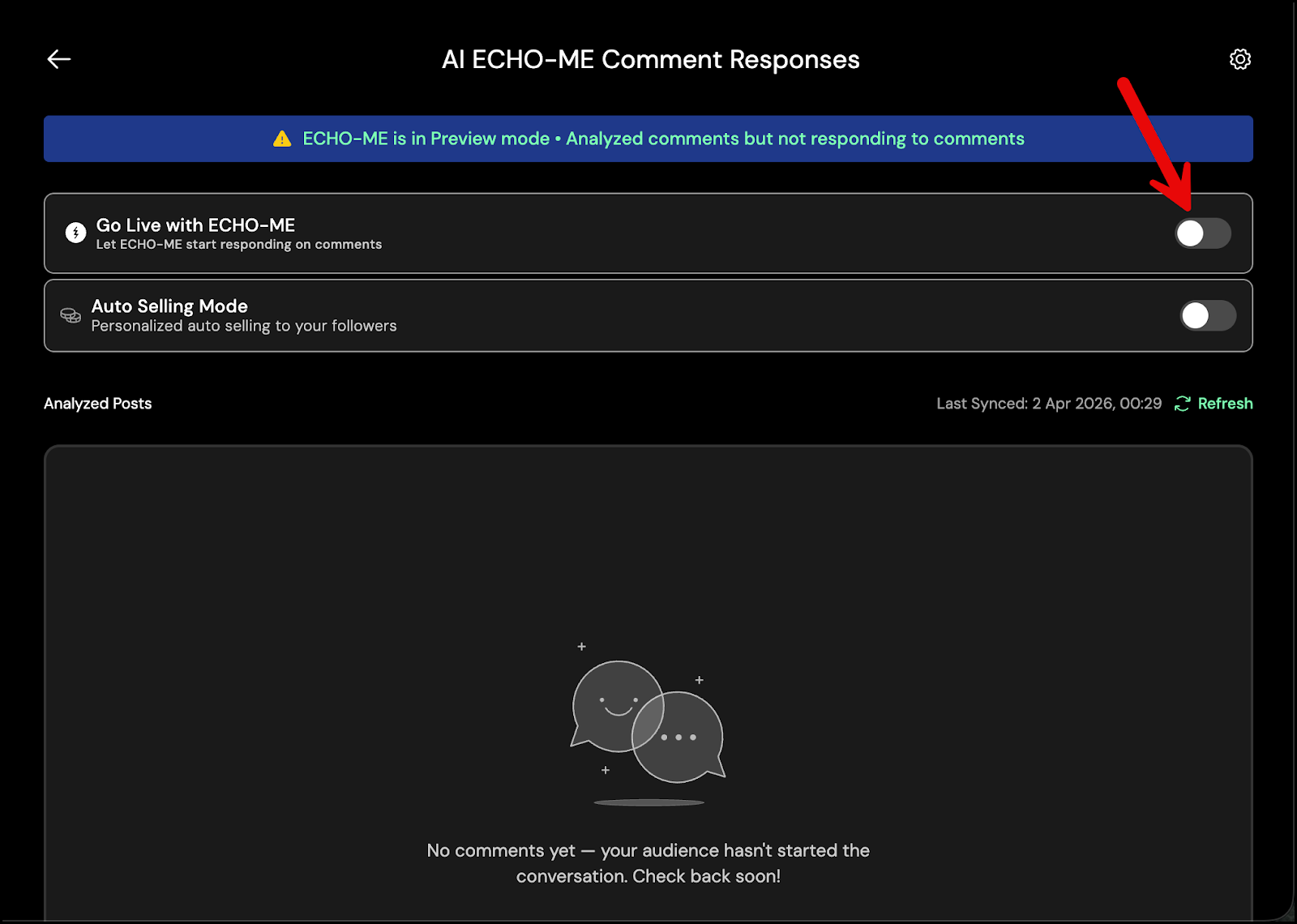 Auto Mode - ECHO automatically replies to all comments using your trained style