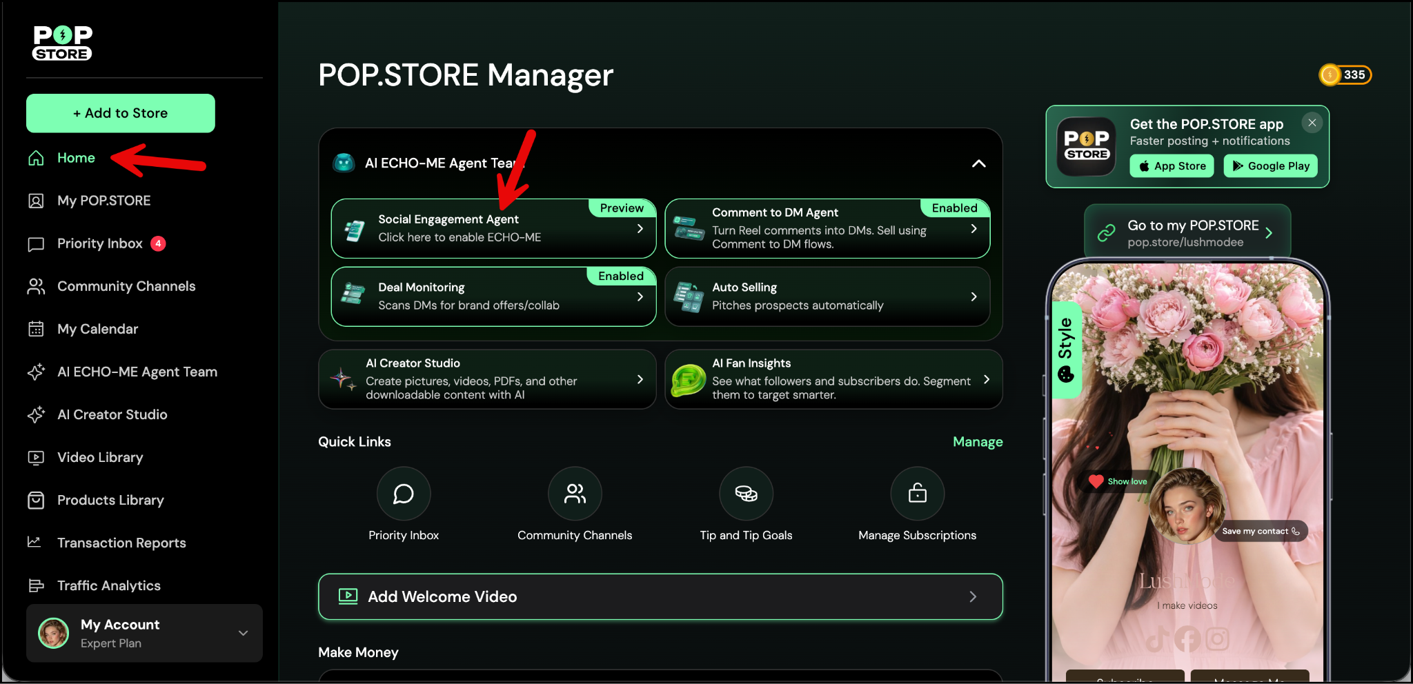 The Social Engagement Agent inside the AI ECHO-ME Agent Team steps in at that exact moment, helping you stay active in conversations, reply faster, and keep your content alive longer. As replies increase, more people engage, visibility grows, and your engagement starts compounding instead of dropping off.