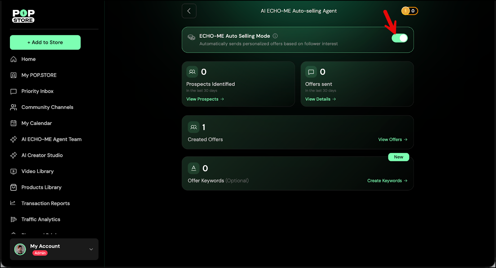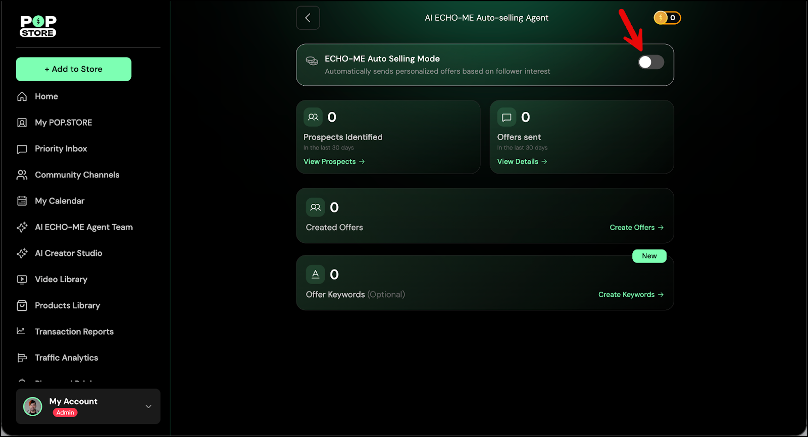 Toggle ECHO-ME Auto Selling Mode to turn it on