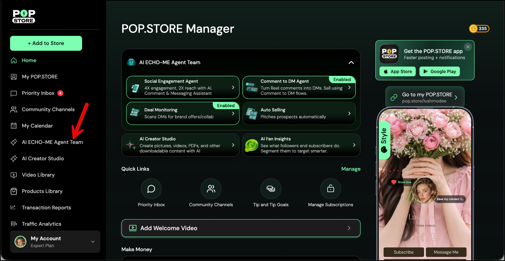 - Or from the left panel, tap AI ECHO-ME Agent Team